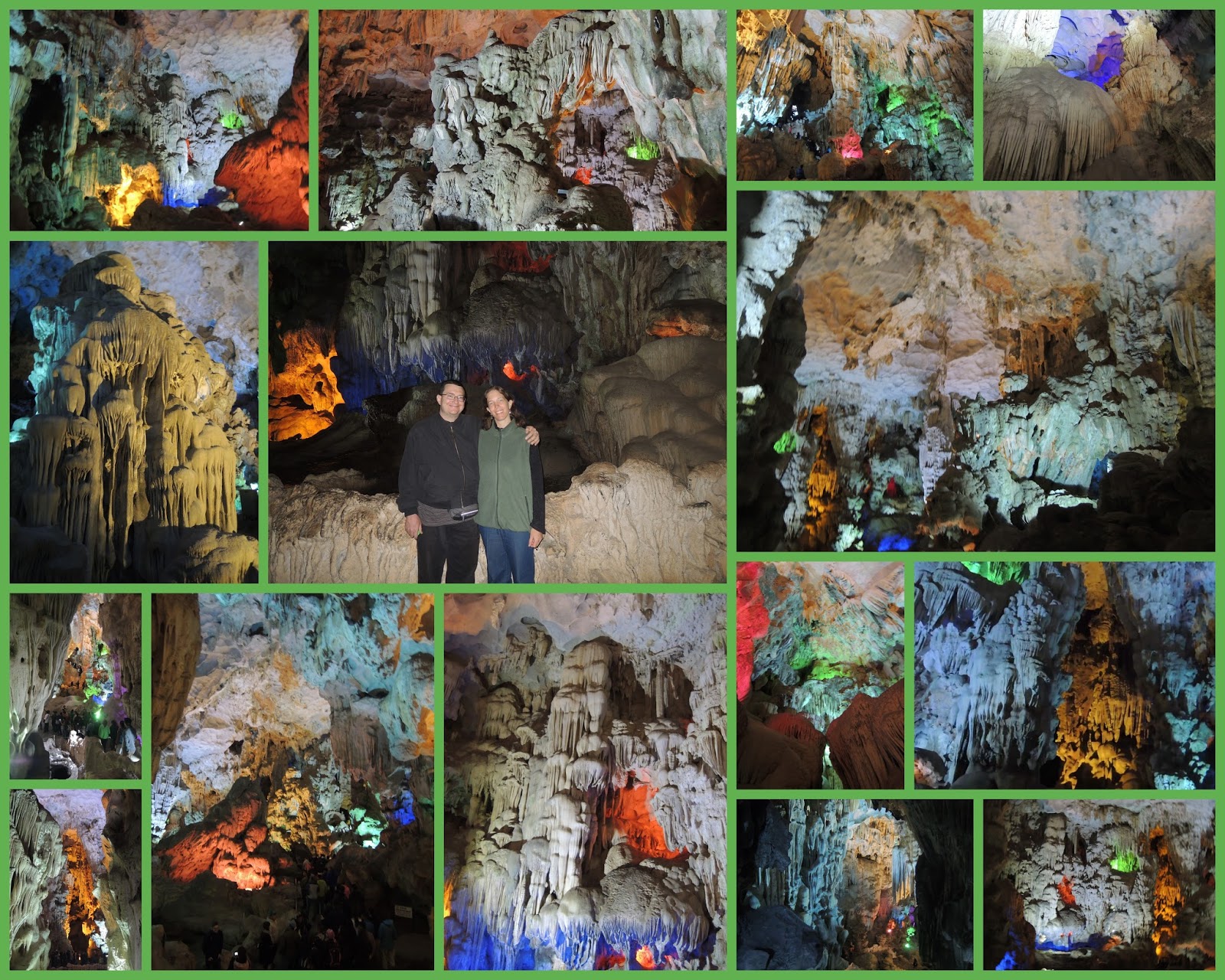 As part of our cruise in Vietnam, the ship stopped to let us out to tour this amazing cave right by the shore. It was absolutely incredible! The colors aren't natural, though - there were different colored lights in different areas to show off the different formations.