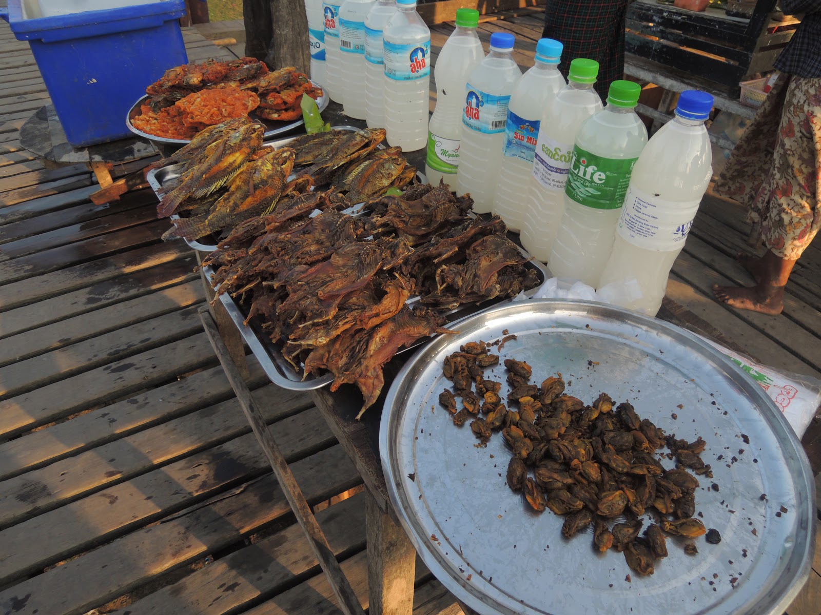 We went for a LONG walk in Mandalay one afternoon/evening. (I think Floyd estimated we went something like 65 city blocks?) We had hoped to visit Mandalay Palace, but it was getting toward evening and the complex was closed to guests, or at least to foreigners. So we strolled along a pathway that ran along the outside of the moat sort of thing.