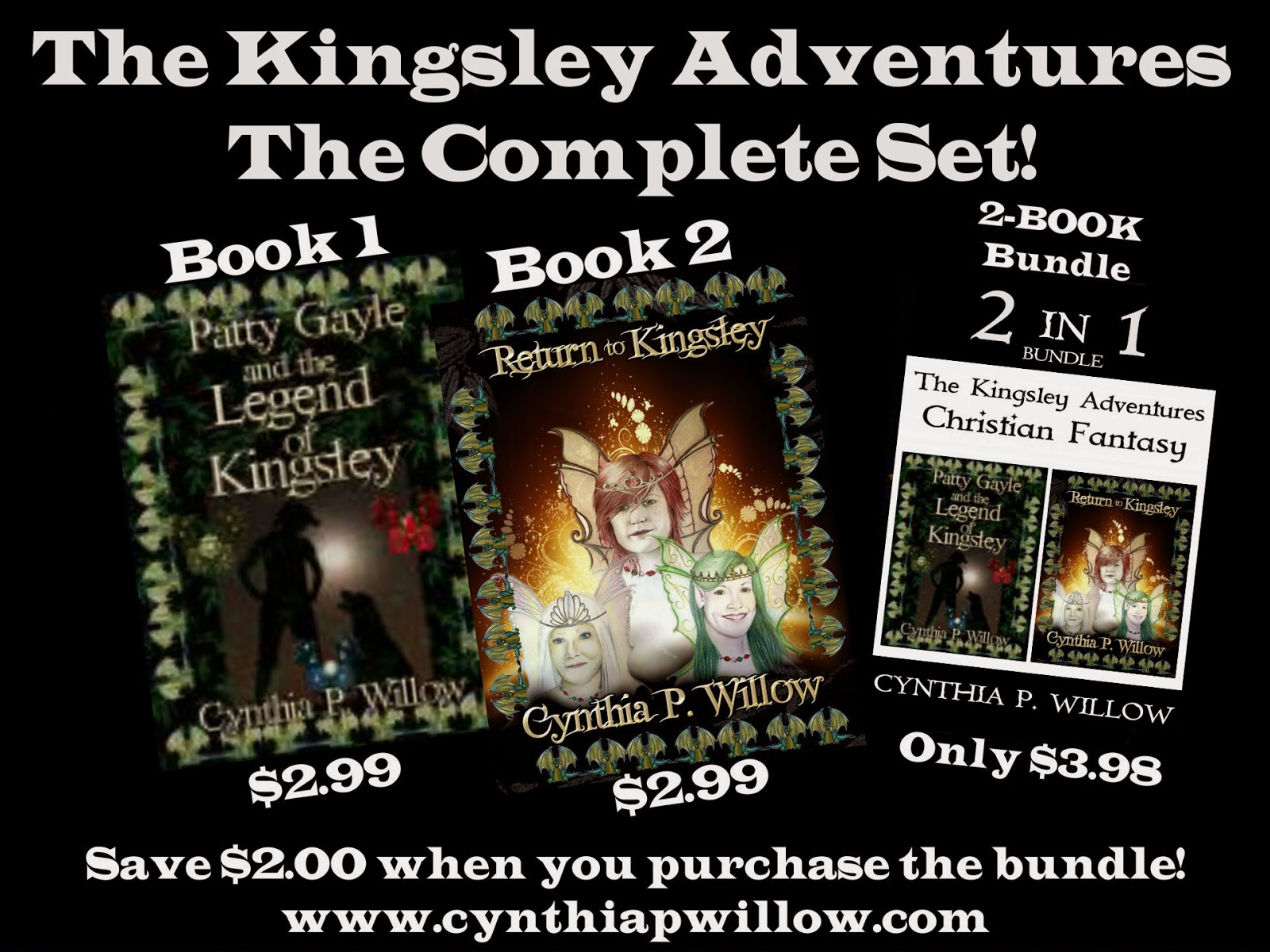 Author’s name:Cynthia P. WillowTitle of book and/or series:The Kingsley AdventuresPatty Gayle and the Legend of Kingsley ~ Book 1Return to Kingsley ~ Book 2