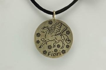 Medallion on Mother Blue's Necklace (front)Mother Blue, the Empress of the Fiorin colony in Book 1, has multiple powers and a bronze necklace that holds the secret to her powers. The necklace can only be activated by the human guide who has been predicted to come to Fiori during their 11th year in the Sacred Scrolls of Destiny. It has been given to numerous guides in the past, but no one has had the ability to unleash the magic. No one knows yet the extent of the magic that the necklace holds. The necklace had magical powers only for Mother Blue and the "chosen one" as predicted in the Sacred Scrolls. The chosen would accomplish 3 major challenges during his/her 11th year. Mother Blue had loaned the bronze pendant to other guides, but no one had yet been able to unleash the magic. Now it's Elle's turn to try.