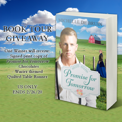 One winner will receive a signed print copy of Promise for Tomorrow, chocolates, and a winter-themed quilted table runner (US only)Ends February 26, 2020