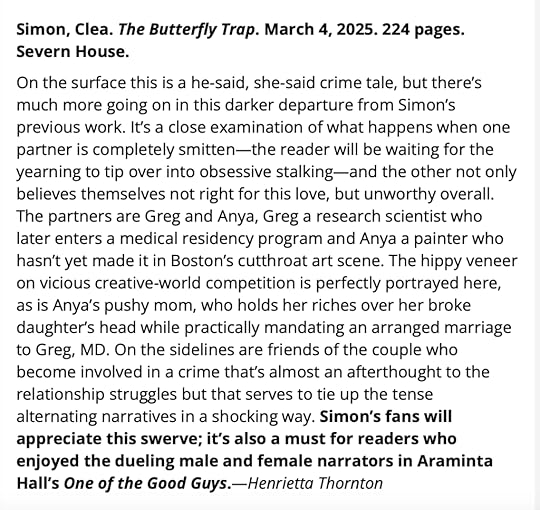 Thrilled with this early review of THE BUTTERFLY TRAP from librarian Henrietta Thornton writing for firstCLUE newsletter!