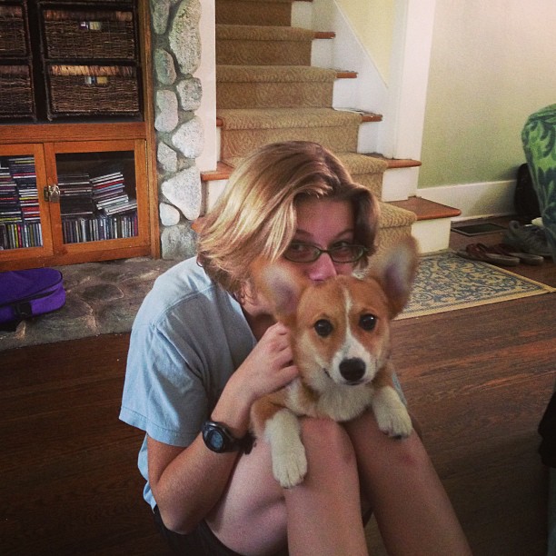 We bought a puppy in May--a purebred Pembroke Welsh Corgi. We named her Moneypenny --"Penny" for short. She's almost six months old, and while she's not quite as demanding as a newborn baby, it does take a lot of work to raise a dog. Penny is a delight 99% of the time, and we can deal with the other 1%.