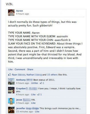 Unlike this photo, a lot of the statuses are funny and I even snicker a little. And sometimes, when I see the ones where they compare TWILIGHT characters with say HARRY POTTER characters or Tangled characters, I even agree a little bit inside. But I never repost.