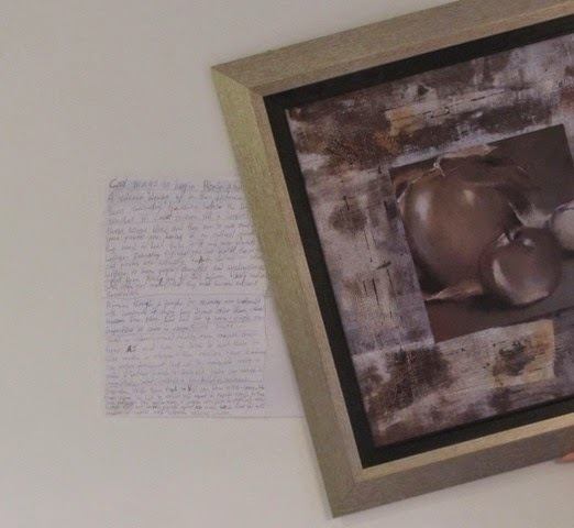 That, my friends, is a brainstorming/plot board for my latest wip, and it's up on the wall in the kitchen where I can jot down ideas as I go by--just where I want it! The painting which covers it lifts up and down easily, and no one's the wiser when the house is being shown. Isn't that fun? Creative? And, just...kind of cool? I think so. It's something to be thankful for. :)