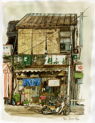 I lived in the apartment for just one year, soaking in the history and aesthetic culture of Yanesen. During that time I photographed, painted and drew the buildings (most of the artwork now unfortunately lost), studied Japanese and worked on adapting my illustration portfolio for the Japanese market.