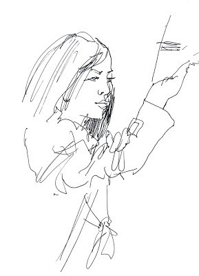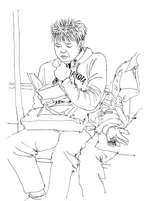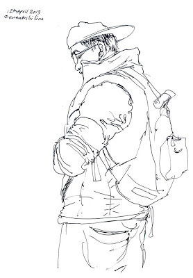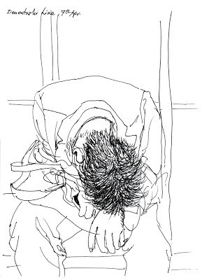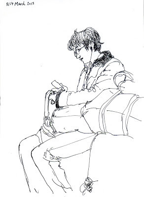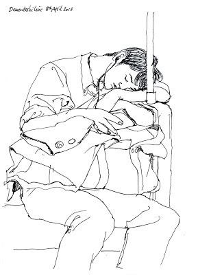 When will you get off? I don't know! You might change your position, or another passenger might suddenly block my view by standing in front. Quickly, rapidly I draw, secretly like a Ninja artist, seizing the fleeting moment. This kind of sketching exercise is full of excitement!!