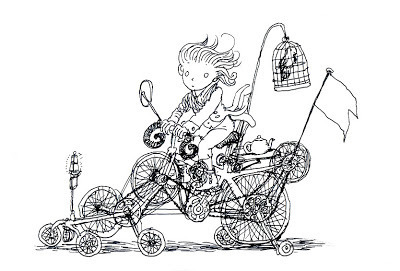 These little sketchbook doodles are actually derived from real life. I bought a new bicycle recently, really. It doesn't look quite like this, but this is how I feel when I ride it.