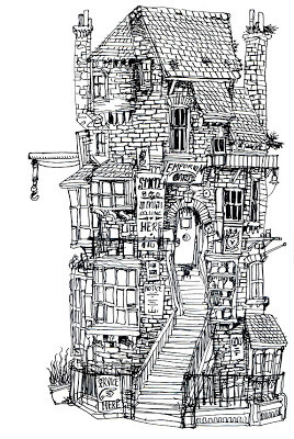 Here I've posted some of my old photos from 1987-88, compared to Google street views of the same locations today. I've many more photos of the area, but virtually all my sketches from the period have been lost. If I find anything though I'll post it!