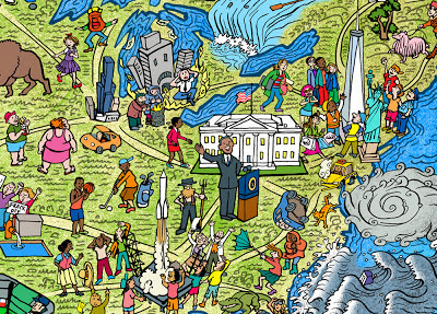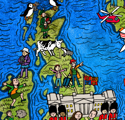 Sunday was "Grandparents Day" in Japan, the idea behind the map was to present news visually in a way that could be shared between grandparents and grandchildren. This turned out to be a tremendous amount of work, as I was required to create the artwork at very large size, and, as it needed to include current news events, would probably require redraw edits right up until the press day. I was given a number of key news items to include, but for several big regions I had no briefing, so ended up doing a lot of my own research for things to fill in.