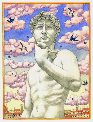 There were many sketches, numerous revisions, but slowly the book began to emerge, just like David himself emerging from the rough rock. I became completely absorbed in the world of Renaissance Italy and of Michelangelo. This is what I really love about illustrating books, you mentally inhabit the worlds you create.