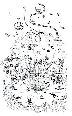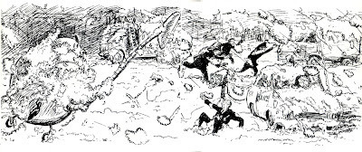 ...and here's the first incomplete drawing I posted now it's finished. I'll upload some more spreads from the book after it's been passed by the editor.