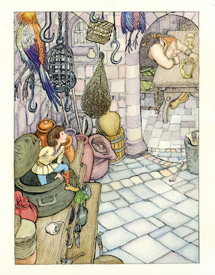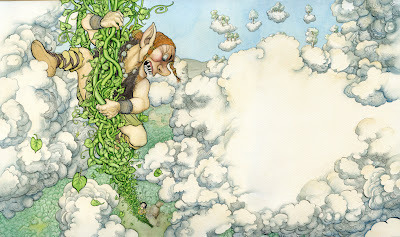 The artwork for Jack and the Beanstalk is finished, I'm just waiting for approval from the publisher now. Here's how some of the previously posted line drawings have turned out after painting.