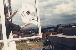 On the last day of the course, 27th July 1981, in a gesture indicative of the time (or my state of mind perhaps) I gathered all my student artwork and threw the lot out of the 6th Floor window, to be scattered like confetti over the streets of Manchester.