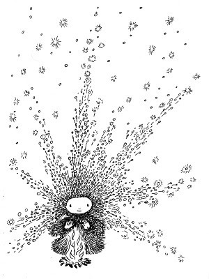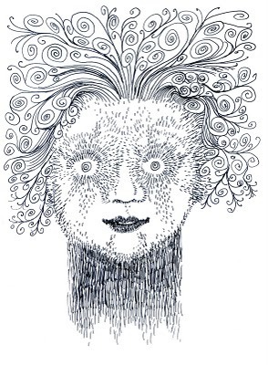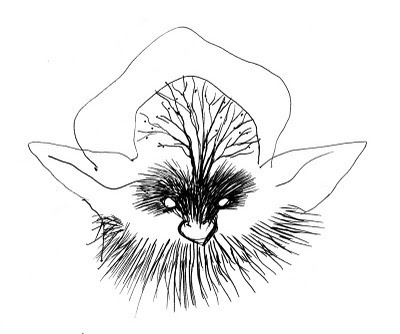 One face in a page of simple goblin doodles. I wasn't so happy with the others but this had a certain something.