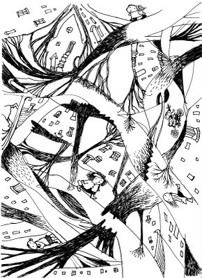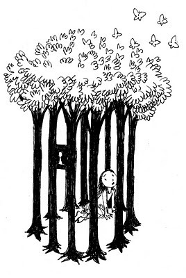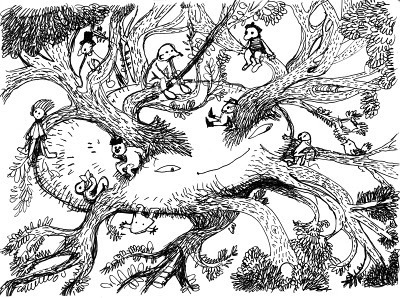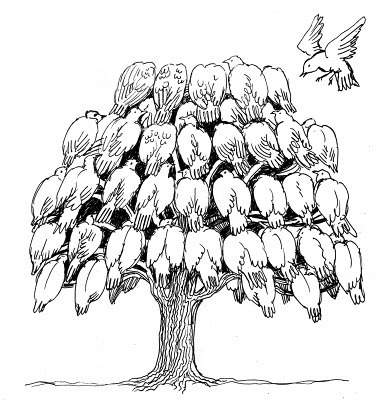 I thought of this after a double-take glance at a photo of an actual tree. At passing glance the tree really did look like it was covered in green birds, but look again and it was just leaves after all. Double takes are a good source for images - you seize on what you thought you saw as the basis for an idea.