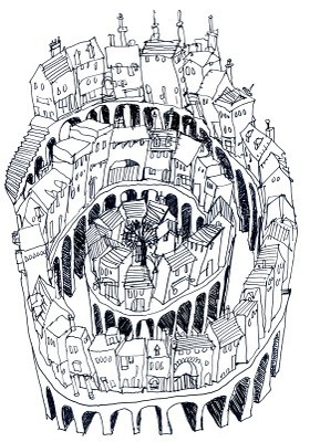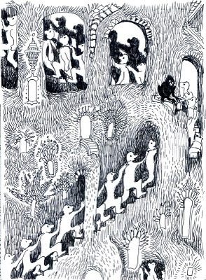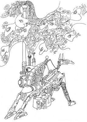 I started this as a ship with cloud sails, but as often happens in my sketchbook it just grew, and grew.