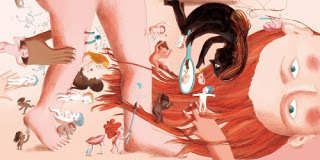 And of course, there were the books. There were far too many to absorb everything in the two all-too brief days I attended, several I fell in love with and intended to go back to buy later, but didn't get chance. As well as familiar names seen at Bologna I was particularly impressed with Editions Sarbacane, Editions du Rouergue and l'Atelier du Poisson Soluble, all producing very fine and often uniquely innovative and sophisicated titles. In the end I only bought one book - Tout Autour de Moi (All Around Me) by Clotilde Perrin, a beautifully rendered chaotic dream fantasy, from the very busy stand of Rue du Monde. Fabulous work!