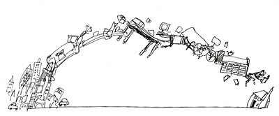 The house-move picture was a self-assigned brief so there was no real time limit, but often with jobs I'm on a tight deadline and sometimes don't have the opportunity to really work on lots of ideas. However for any given concept based illustration I try to come up with at least two, preferably three or four workable ideas, loosely scribbled in my larger desktop sketchbook, or doodled in my pocket notebook if I'm hit by inspiration outside. Often I'll fill two or three A4 pages with small thumbnail idea notes. The best are selected and made into presentable sketches to show the client. Based on their response I then make adaptations or proceed onto final artwork.