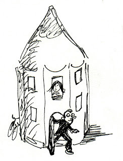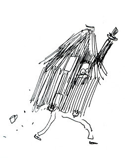 It's been a while since I posted some sketches, so I thought I'd show how I work on ideas when, as often in illustration, the concept or "brief" is decided by the client, but visual interpretation is up to me. As an example I'll show how I came up with the idea for my recent house-moving image.