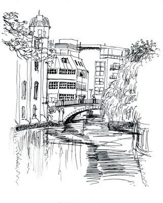 I organised the first sketchcrawl for British SCBWI in London last year (see my blog entry for 27 November), since when the idea has really taken off in other regions. Yesterday a Europe-wide Solstice Scrawlcrawl was held, with simultaneous events for children's book illustrators and authors taking place in France, Germany, Greece, the Netherlands, Spain and the UK, plus members in other countries walked solo scrawlcrawls without groups. The main UK event took place in London on the Thames south bank, but I thought it would be a great idea to run one in Norwich too.