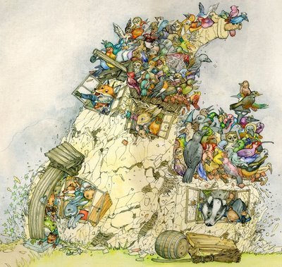 Another children's book illustration that fits this weeks Illustration Friday theme "cracked". This was from Hoppy no Atarashii Uchi (Hoppy's New House), one of my own stories published by Fukuinkan Shoten in Japan.