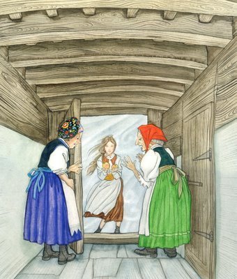 It's a spread from the picture book 12の月たち (12 Tsuki-tachi, or "The Twelve months" in English), first published back in 1991 in Japan. It's a classic Slovakian fairytale of evil stepmother gets rid of kind girl Marushka whose beauty surpasses that of her own ugly daughter by sending her out into the depths of winter snow to fetch