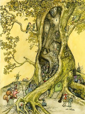 Old exhibition piece illustrating the saying Fairy Folks are in Old Oaks. Seems to fit this week's "Hollow" theme. Can you spot the hidden figure in the shadows? (I didn't know it was there until after I'd completed the artwork).