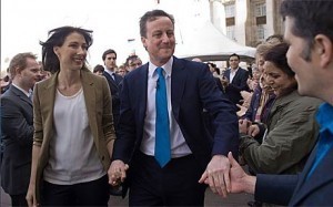 Dave and his wife Sam meet supporters in London today (Photo: Reuters)