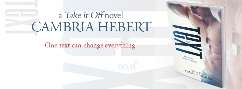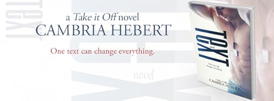 Title: TEXTAuthor: Cambria HebertCover Designer: Mae I DesignRelease Date: November 8, 2013Series: Take It Off series - Note: the Take It Off series is a series of stand alones. Each book is its own story. Genre: New adult contemporary - due to graphic language and sexual content this book is recommended for readers 18+.