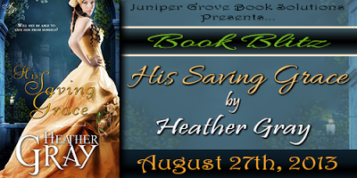 Title: His Saving GraceAuthor: Heather Gray Published: Astraea Press, July 30th, 2013 Word Count: approx. 32,400 Genre: Regency Inspirational RomanceSynopsis:
