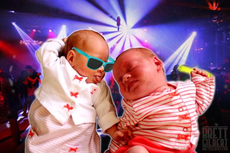 Lol. My newborn twins dancing the night away! Aka keeping me up all night. (Thanks to Brett Gilbert for the photo)It's been a crazy year! I am now a mom to two doppelgangers! Okay, okay, identical twins. (We all know they're really doppelgangers though!)
