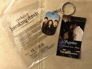 Breaking Dawn key-chain (movie promo at opening night)On my Facebook page, everyone is saying they like FAE - well, you'll love the Light Tamer series - the first book introduces you to the characters, the second book goes into details. The third book, Light Bound, will take place in the Woodlands. It is appropriate for 12 and over. The series is about friendship, struggles, and a little humor.