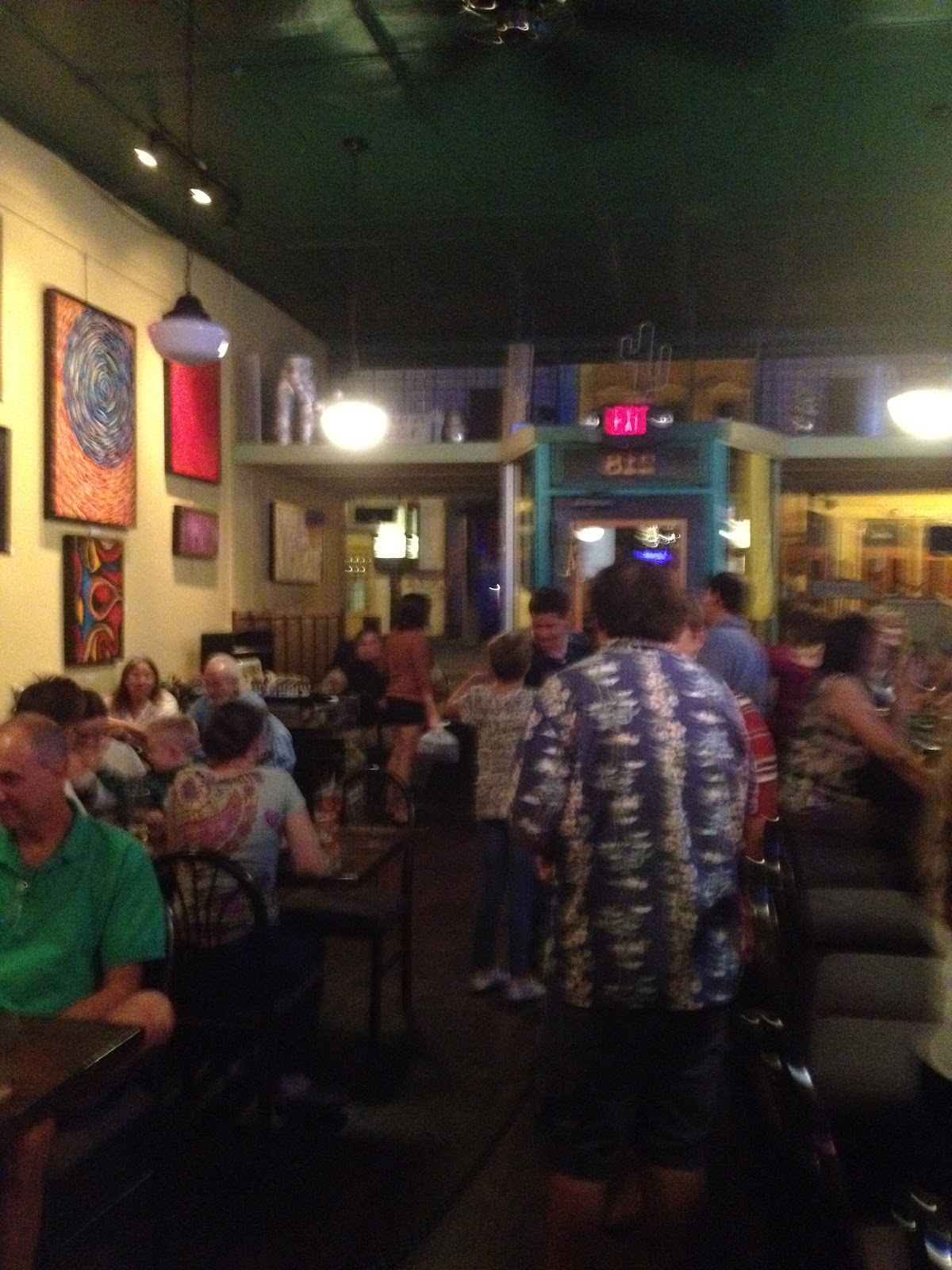 As to the chaos, my husband and I were greeted by an almost empty Shooter’s on Saturday afternoon and a sign on the door which read, “Cash and local check only.” With the service outages, none of their credit card machines nor their computerized ordering system was working. They lugged out the old cash register and went about business. Thankfully, we had cash and didn’t have to go without our Saturday afternoon beer. But you can certainly see the potential for chaos there, can’t you?