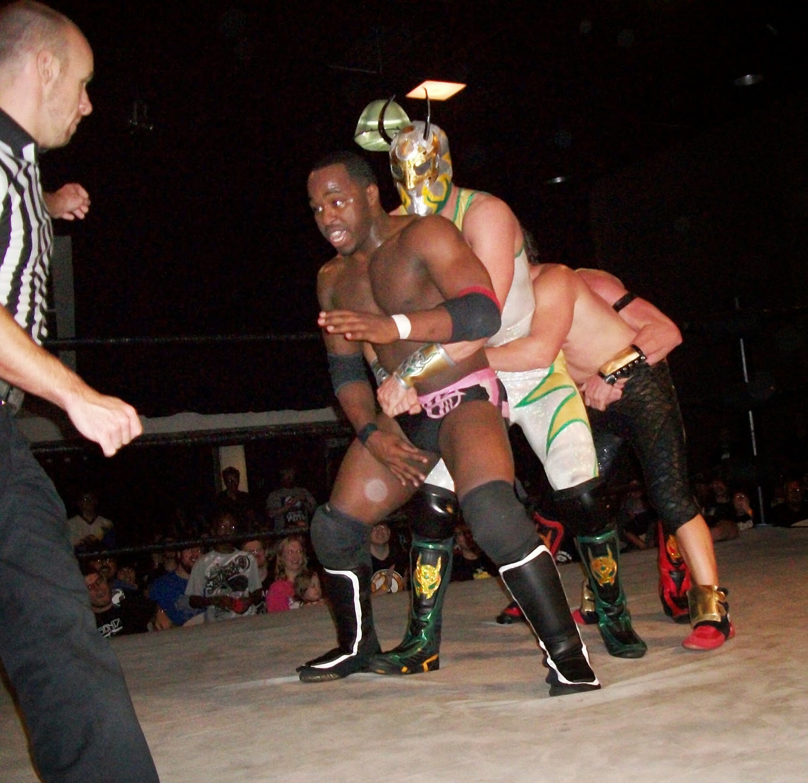 A pretty hilarious moment, when everyone hooks on waistlocks, including (eventually) Chikara Pro ref Bryce Remsburg.