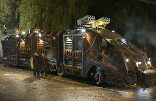 True story. The first name for 'Land...' was originally 'Dead Reckoning'. Romero still included that name in the movie as the custom made zombie stomper 18-wheeler. C'mon now. You already know you've thought of having some kind of mechanized zombie death dealer in your apocalyptic dreams. 'Land...' delivers that machine in spades.