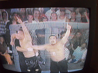 So as you might imagine, the athletic Keith gets the jump on the obese Emmanuel and beats him down, gets $1000 for his efforts and a broken wrist. Ben Perry ends up calling Emmanuel an 'Asset to the art'. Hmmmm. I wonder what Takanohana or Kaio would think about that? When Emmanuel has gained the title of at least an ozeki, let's talk. Shit, how about just a juryo.