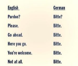 For starters, need to use this cue card to remember when to say “bitte”! Heh, that’s a joke. You throw it out about every 3-4 sentences, because it means EVERYTHING.