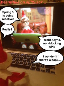 “What’s this?” he thought. So he sat down and read the whole thing. (Elves can read entire books in one night, you know). Reading the book, his eyes opened wide. Spring Boot might just do the trick!