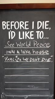 I spoke to a friend this past weekend about the loss of her son. I asked "Has he been to visit you in any fashion?" She said "no." Then she said "Except for a dream I had where I saw him at this giant party at my parent's house. He seemed happy and was having fun. And I was startled and said "Wait! Where are you? How can I find you?" And he laughed and said "Mom, just look at the pictures."