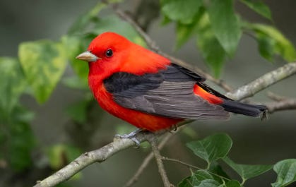 Scarlet Tanager - Tatum’s gateway bird.Let me explain in altogether overcomplicated fashion: