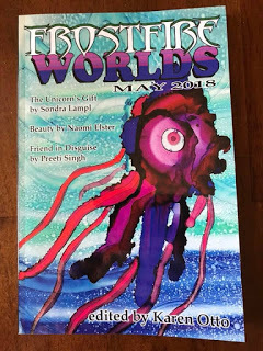 My mid-grade/YA short story "Doppelganger Showdown" is in this issue of Frostfire Worlds. My contributor copy recently arrived, so here's what it looks like in the wild.The story has a variety of inspirations, including my own daughter and the take on fairies in Susanna Clarke's Jonathon Strange & Mr. Norrell--I've tended to shy away from fairies and elves in my writing, but I love her take on it, reaching back to traditions of the fair folk (or whatever you want to call them) as as tricksters and dangerous beings on the edges and hidden places of our world.