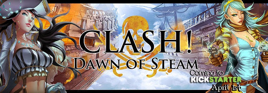 I haven't had a chance for a couple of days to sit down at the computer, but be sure to go visit the Kickstarter for CLASH! Dawn of Steam. I'm impressed with how quickly the game is getting backers (over 100 before day 2 was up), and pleased with the reception my stories have been getting.Throughout the month the stories will be used to help create buzz for the game. The first three have gone up already. Panstrom Swiftra is a dark and brooding sort of character, yet he's a champion of hope in the game. Zaraza Haedes is an ancient character who long ago sought out a magical weapon to save his people. He succeeded, but at a high cost to himself, because the weapon has corrupted him. He spent an age in exile and is returning now to create chaos. And Eve of Eden is a sky pirate. When her beloved island of Eden was threatened by the airships of the rest of the world, she took to the skies to defend it. Eve is quickly becoming a favorite character in the comments on the Kickstarter page.