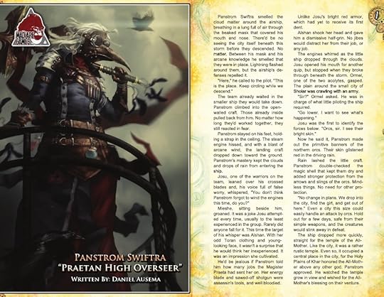 The first of the eight stories I'm writing for CLASH! Dawn of Steam has now been added to Scribd. Panstrom Swiftra, despite his gloomy appearance, fights as a Champion of Hope in the card game.I'm currently writing the rough draft for the fifth story, and I think readers of many kinds will find these to be fun stories.