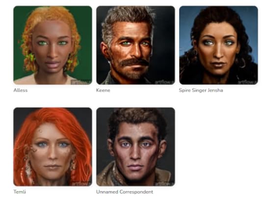 As Spire City: Occupied continues to be serialized on Vella, I've been playing around with the AI-generated characters from Artflow. Part of what makes it fun is that I never know how it will respond to the prompts I give, though that sometimes makes it frustrating as well... So here are my favorite results I got from the prompts I fed it. Are they exactly how I pictured them as I wrote the story? No. But I like seeing how the pictures come out, and there's something about these five that fits, even so.