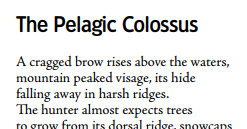I've just returned from a two-week family road trip (and feeling rather tired from it), but a couple of cool things happened publishing-wise while I was away. I'll start with this news, that Star*Line 44.3 was published. It includes my poem "The Pelagic Colossus" and many of poems to enjoy. If you're a member of the SFPA, you've already received your copy. If you're not, you can get a copy at that link!