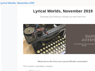 And there it is, hinted at a few weeks ago and now live: the Lyrical Worlds newsletter.Lyrical Worlds will be the key way to get the latest news about my stories, poems, novels, etc. I'll still share links here on the blog, but the monthly newsletter will be a simpler format to update readers on everything strange and wondrous happening with my writing.