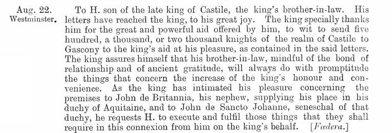 Enrique must have been tough. He had survived decades of brutal imprisonment, and went home to serve as regent of Castile. The old man was suitably appreciative of his rescuer’s efforts: when the Anglo-French war broke out in 1294, he dispatched hundreds of knights of Castile to aid the English.