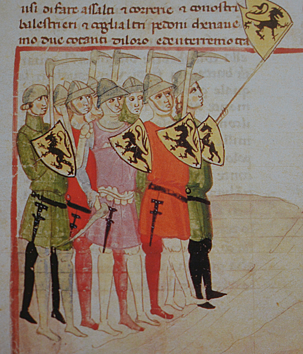 The pic is of Flemish infantry, taken from the Florentine ‘Nuova Cronica’ and uploaded to Wikicommons, public domain.