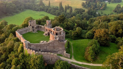 This verse describes the castle of Sir Richard Atte Lee, who gives Robin Hood and his men sanctuary from the wicked High Sheriff of Nottingham. This tale was possibly inspired by Wellow or Jordan Castle near Rufford Abbey in the heart of Sherwood Forest. Wellow was a ringwork castle of the motte and bailey type, updated in 1252 with the addition of a fortified manor house on the motte. It was protected by a moat and the nearby village was surrounded by a ditch, so Wellow was 'double ditched', just like the ballad.